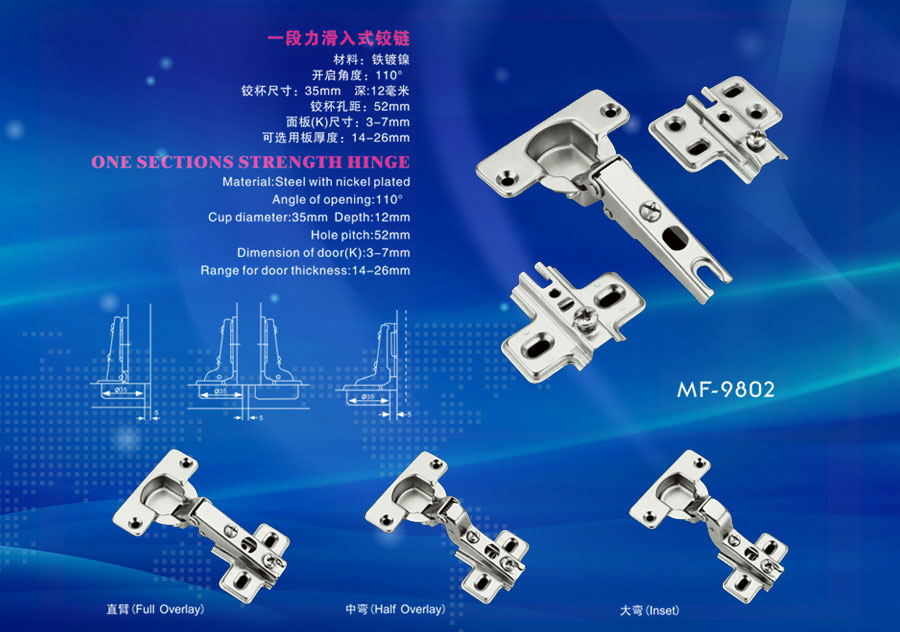 一段力滑入式鉸鏈