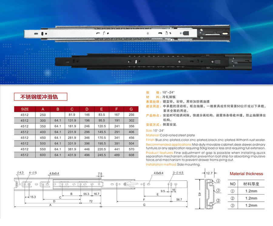 不銹鋼緩沖滑軌